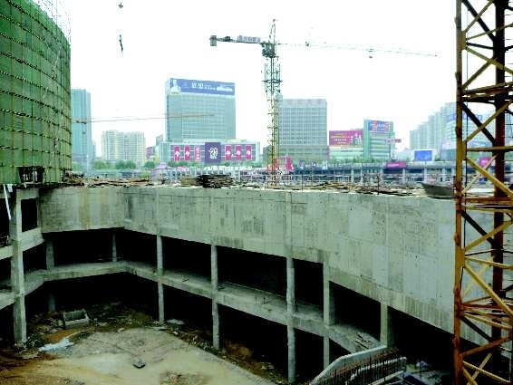9日,在泰华白浪河假日广场项目施工现场,记者看到,隧道距离地面约15米,由一根根白色大柱子撑起,进行了简单的装修,上方安装了灯管。隧道实现了东西贯通,但是为了方便管理,东西入口大部分被施工人员用土堆或砖墙堵了起来,仅有一段约六七米宽的地方用蓝色围挡挡了起来。越过围挡,便能望到河对面西口V1广场地下停车场处的灯光。