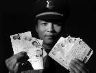 2011年5月13日,合肥,安徽大学新校区的保安齐永章连续第9年参加高考。从2003年到2010年,一叠颜色和形式各异的准考证上的照片显示,齐永章从一脸稚气少年变成满脸成熟的小伙子。图片作者:王从启/CFP