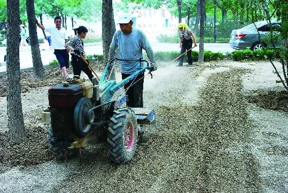 6月9日下午,辽河小区的绿化工作人员正在将空置的地面翻新,准备种植草皮,意在减少小区内的尘土,净化空气,给市民带来一个清新的居住环境。