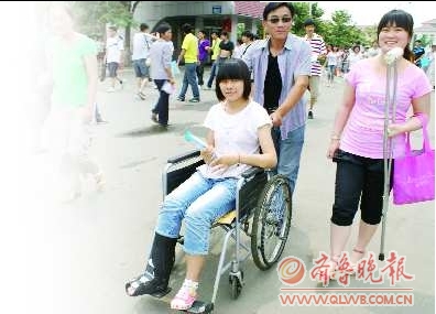 →6月9日,张晓阳“走”出考场。就读于滕州二中的考生张晓阳,在高考前几天从楼梯上不慎跌倒,造成了脚腕骨折。在滕州市相关责任部门的批准下,其父亲和姐姐护送她考试。