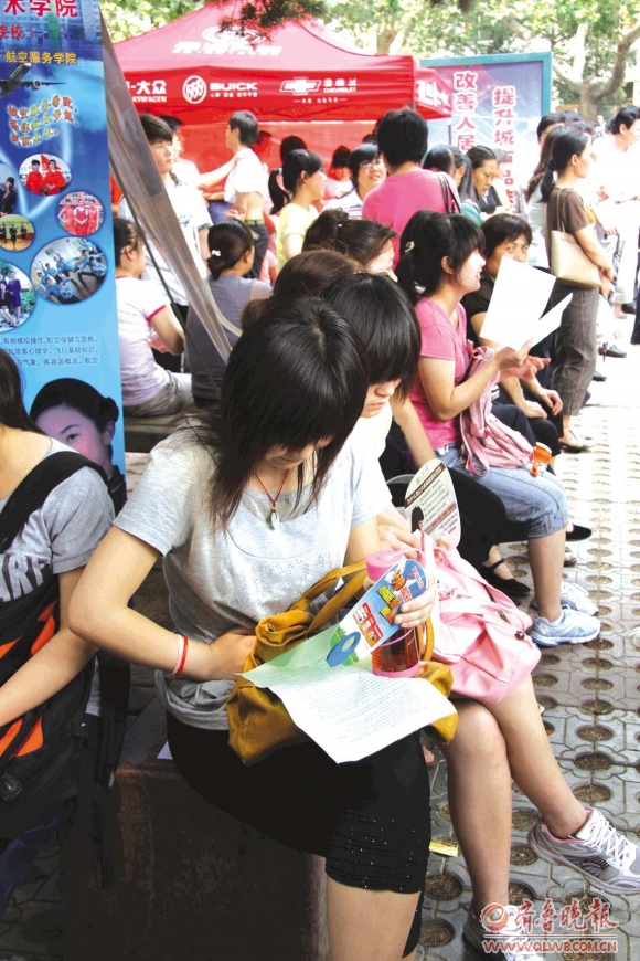 9日,高考结束,不少考生都开始打算自己的暑期生活,其中,打工成了不少考生的首选。图为在一考点外,考生们看着自己手中的宣传单。