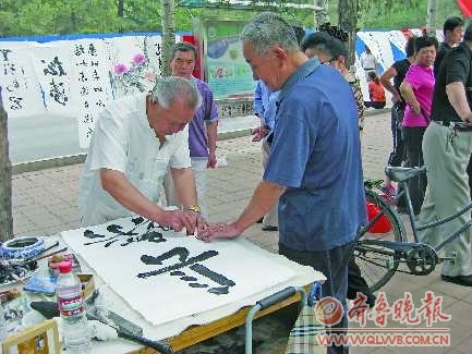10日上午,市中区二七街办梁南社区书画爱好者协会的会员在济南战役纪念馆前开展书画义卖,卖出作品30余幅,募集到善款700余元,将全部捐给慈善部门,用于社会救助。
