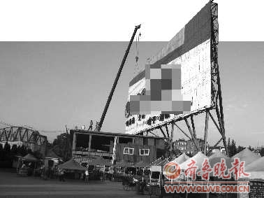 广告牌切割后分成6块,每块的重量都在10吨以上,仍然比较重,吊车与广告牌的距离太远,吨位为100吨的吊车对已经切割完成的广告牌无能为力,拆违工作只好暂停。“吊车臂力承受不了这么大的重量,加上风力比较大,拆除行动只好暂停。”拆违工人告诉记者,无论是拆除难度还是广告牌面积,此次拆除行动都堪称空前。“仅仅是切割广告牌用的氧气罐我们就用了20多罐。”拆违工人说,全部拆除将用掉约30罐氧气。
