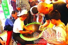 ▲6月11日,展区内的现场手工炒茶,吸引众多市民驻足观看。