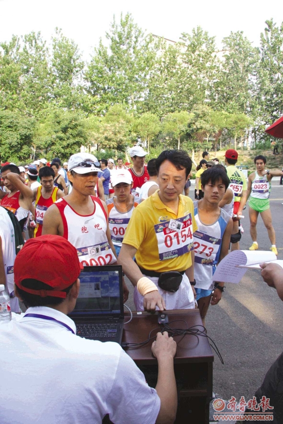 “太累了。”11日上午11时,在本次环泰山超级马拉松旅游赛的终点望岳西路北首,来自山东省田径运动管理中心的刘则司第一个撞线,获得了男子组冠军。夺冠后的他一屁股坐在路边,脱下跑鞋,接过工作人员递过来的矿泉水喝了起来。