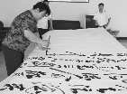 6月2日,前来参加国际书画艺术作品展的中国毛泽东书法研究院院长张军虎,在临沂激情挥毫泼墨,书写毛泽东诗词,与临沂各界交流切磋书法艺术。