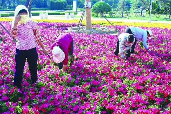 6月12日下午5时许,绿化工作人员在清风湖西门的花圃里除草。“花都是才种上不久的,”一位工作人员说,“现在都在创城,种上花花草草的多好看呀。” 本报记者 任小杰 摄影报道