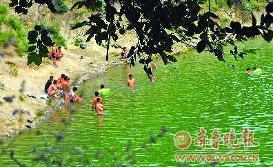 14日,济南气温很高,已经吞噬了众多生命的砚池,很多大人孩子仍然在里面游泳、玩耍。这里的悲剧几乎年年上演,但就是挡不住下水的人们。 本报记者 周青先 摄