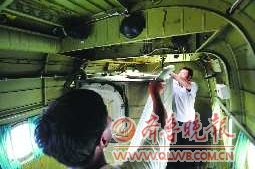 “运五”升空后,记者跟随工作人员赶往飞机施药的林带。记者注意到,林地的树木多为杨树,飞机轰鸣着在树冠上空飞过,机尾后洒出一条约50米宽的带状白色药雾。据机组人员许朝晖介绍,飞机两翼上分别安装了3个雾化器并配有螺旋桨叶,当机舱内的驾驶员按动操作键时,螺旋叶快速旋转配合雾化器将粘稠的药剂分离成细小的雾珠洒下,洒药宽幅达到50米。而“运五”是目前药物雾化效果最好、全省飞防的主要机型,适用于高速、国道、河流绿化带等区域的防治,一个架次可以载药600—800公斤,作业时间45—50分钟,飞防一次的面积多达8000亩。