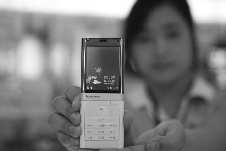 本报6月14日讯(记者 孙国祥)14日,在潍坊市中百电器店内,销售人员正在展示一款透明手机,据了解,这是潍坊市首款透明屏幕手机,也是全球首款彩显透明屏幕手机。