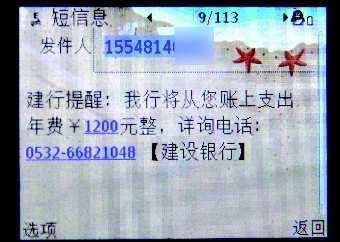 本报6月14日热线消息(记者吴凡)“建行提醒:我行将从您账上支出年费¥1200元整,详询电话:0532-66821048建设银行”。14日,多位市民向记者反映,自己手机上突然收到一个以155开头的手机号发来的“扣费”短信,不知是不是真的。