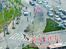 14日下午4时15分,济宁市消防指挥中心接到报警,市城区洸河路与火炬路交会路口,一辆摩托车发生自燃。接警后,济宁市消防支队特勤中队出动一部消防车和8名官兵赶赴火灾现场。