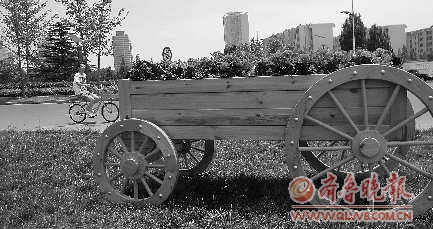 6月14日,在新市区泰安路一个绿化带内,一辆马车造型的花车摆放在草坪上,花车内摆满了鲜花,整个造型十分新颖。据介绍,日照市园林部门近期共在市区范围内摆放了23组类似造型的立体雕塑。