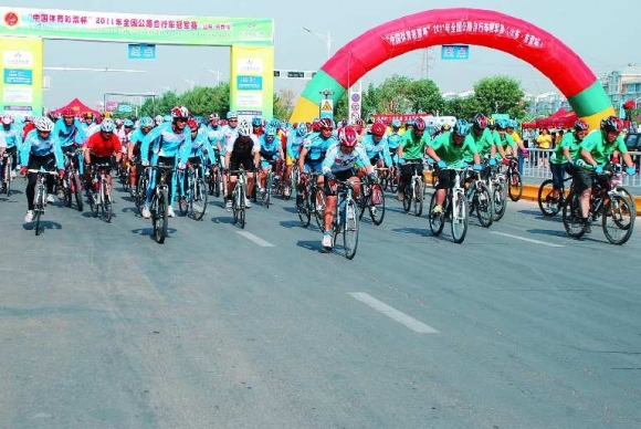 赛会组织者特在专业选手比赛之前安排了一场自行车爱好者友谊赛,百余名东营自行车爱好者参加了比赛,其中年龄最大的选手已经68岁,而最小的参赛选手孙国睿年仅9岁,孙国睿的母亲告诉记者,参加比赛可以让孩子找一下比赛的感觉,“自行车比赛也是全民健身的一部分,重在参与。”