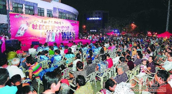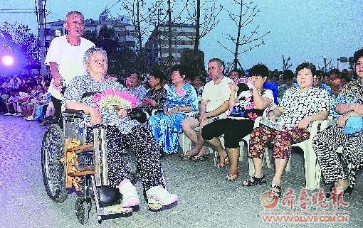 16日下午,济南的天有些阴沉,但是这并没有影响市民前来观看演出的热情。不到晚上7点,居民就开始陆陆续续来到演出现场,等到活动正式开始的时候,前来观看演出的市民已经在广场坐得满满当当,随后来的居民也围着广场站了好几圈。