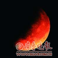 16日凌晨,记者在济南东郊章丘农村透过云层缝隙不连续地观察到了月食的“红月亮”变化奇观(上图)。 本报记者 周青先 摄影报道
