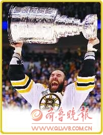 6月15日,棕熊队球员查拉高举冠军奖杯庆祝。当日,在北美职业冰球联赛(NHL)总决赛第七场比赛中,波士顿棕熊队客场以4:0击败温哥华加人队,从而以4:3的总比分时隔39年捧起总冠军奖杯———斯坦利杯。 新华社发