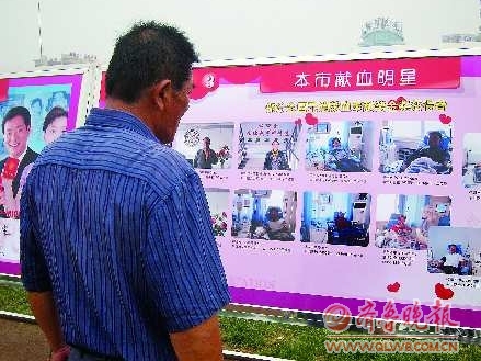 16日,德州市中心血站在市中心广场举办大型展览,献血的知识和政策受市民热捧,市民纷纷到展板前观看。
