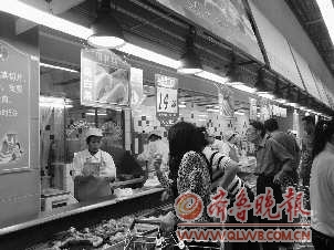 16日,记者从青岛各超市及农贸市场获悉,目前猪肉价格普遍在15元/斤,有些地方卖到16元/斤,比上月涨幅约11.5%,同比涨幅约为58%,五花肉15元/斤,精瘦肉则要卖到17元/斤。“真是一天一个价,上星期买的五花肉14块钱,今天这肉没那天的好还要14块5,一天比一天贵!”在大润发超市排队买完肉的张女士感叹猪肉价格涨得快。记者看到,该超市普通猪肉标价为14.99元/斤,五花肉标价14.50元/斤,精瘦肉标价16.90元/斤,相对便宜的价格让市民在柜台前面排起了长队。