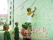 15日,威海海警训练基地的战士们来到环翠区海城居委会,走进社区死角扫“黑”,清除墙面“牛皮癣”、清理陈年垃圾杂物,为社区居民大扫除。 本报记者 李彦慧 摄