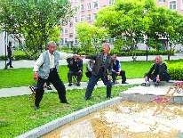 作品描述:两位同为78岁的老人拉钩比手劲,一旁的同伴们都很开心。
