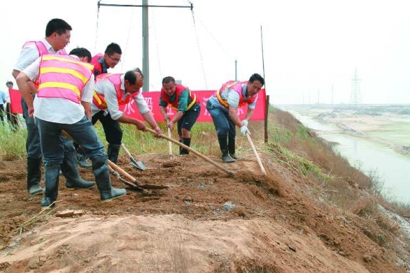 6月16日,东营市公路管理局东营分局在黄河路东延段进行了水毁抢修应急演练。据东营公路分局安全科尚凡军科长介绍,水毁演练将有效防止汛期到来可能引发路基塌陷,从而造成公路损毁的现象,确保公路行车安全。 本报记者 郑美芹 本报通讯员 王参 摄影报道