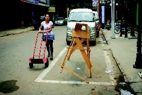 16日,在潍坊市向阳路的灯具市场内,原本为方便车辆画好的停车位,却被一些商家用东西“霸占”。为了创建文明城市,交警部门专门画出了停车位,供市民停车,但一些商家却怕车辆停放到自己的门口影响自己做生意,而出此怪招。