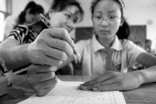 事件:学生们正在学习使用“视力健康笔”。据了解,用这种笔写字时,如果使用者写字姿势不正确,笔芯就会自动缩回。