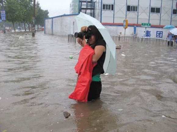 当聊城遭遇25年一遇的大暴雨时,我们都和市民一样,在水中,在路上。