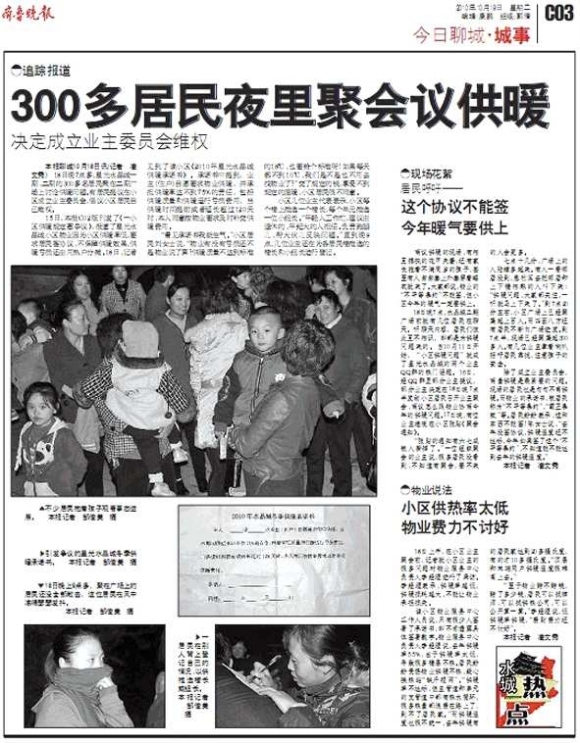 11月15日正式供暖第一天,记者们兵分几路,探访20多个小区,第二天报纸以《暖之乐》、《暖之忧》、《暖之问》三个整版予以重点报道,将“问暖热线”推向高潮。