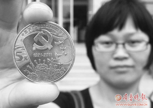 6月16日,在天香路建设银行,建党90周年纪念币一经发售,一个小时之内便被市民抢购一空。图为一市民在展示刚购买到的纪念币。 本报见习记者 邓兴宇 摄