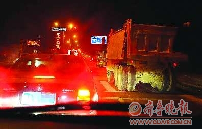 17日夜晚,一辆渣土车在舜耕路由南往北行驶,经过玉函小区南路时闯红灯冲过路口。夜晚司机视线距离缩短,出现紧急情况时会避让不及,为了自己和大家的安全,渣土车请别再闯红灯。 本报记者 邱志强 摄