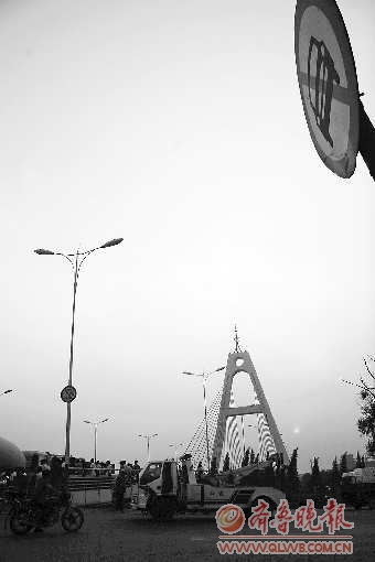 路边修车行的张老板目睹了车祸的全过程,据他讲,事发时,骑摩托车的男子沿着斜拉大桥由西往东斜着拐弯,想往河堤上拐去,而砼车正好沿着河堤行驶,向与之相对的方向拐去,随之发生车祸。