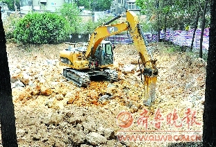 20日上午,记者来到英雄山风景区,在山东科技出版社对面找到了王女士所说的施工现场。记者看到,施工现场在一个由铁栅栏围起来的院子里。里面有两台正在施工的挖掘机,发出的“轰轰”声震耳欲聋。