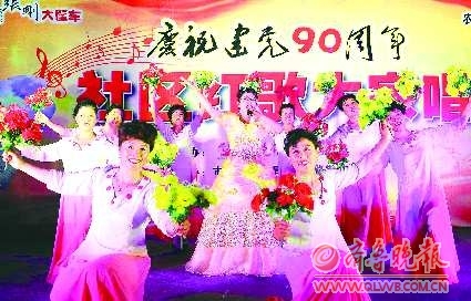 本报6月20日讯 19日晚,由齐鲁晚报、农科院兴牛乳业共同主办,市中区文化局、舜玉街道办事处协办的张刚大篷车“社区红歌大家唱”,在市中区舜玉公园小广场唱响,来自市中区各社区的数十位演员为大家带来十余首红歌,与社区居民共同欢庆中国共产党建党90周年。