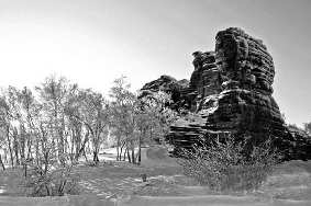 阿斯哈图石林位于赤峰市克什克腾旗。草原上群山呈现出典型的丘陵地形地貌特征,四周险峻,而山顶平缓起伏,冰石林在这平坦的丘陵地带显得格外突出。专家分析,阿斯哈图石林主要是由冰盖冰川的创蚀、掘蚀和冰川融化时形成的大量冰川融水的冲蚀作用下形成的,所以叫“冰川石林”。