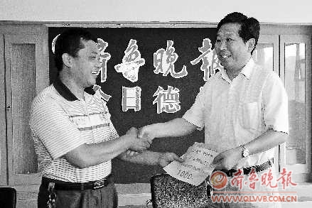 “上次发奖的时候我就在场,这次获评季度最佳线索奖,压根儿就没想到。”20日下午,本报季度最佳新闻线索奖获得者马士勇告诉记者。 从又一村酿酒有限公司副总经理韩明林手中接过1000元现金大奖时,现场的读者笑着说让马先生“数一数”,他摆摆手说道:“齐鲁晚报的信誉我信得过,不用数。”马先生也表示,以后有事就会拨打2600000,将自己身边的事情告诉更多的人。