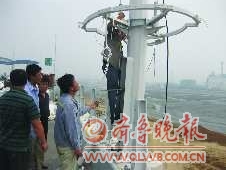 “这应该是国内最先进的路灯了。”安装路灯的负责人李桂军说,他们来自江苏扬州的一家照明电器公司,大桥收费站的路灯均由他们安装。这种路灯高15米,自带电机,可实现电动升降,而灯管是采用飞利浦的4个400w的钠灯,雾天也不影响照明,每部造价在5万元左右。目前各个收费站正在安装路灯,预计两天内就能安装完毕。