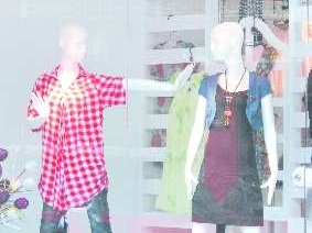 作品描述:一时装店的橱窗内,一个模特正用手掌“打”向另一个模特。