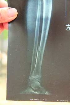 因为午休时不遵守学校的纪律,在苍山县志成学校读五年级的12岁男童宋诗文的左腿被老师打成骨折。图为左腿打着石膏的宋诗文躺在家里养伤。 本报记者 张斌 王晓 摄