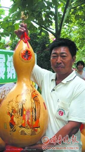 有了葫芦上作画的经验,方以忠就到处寻找葫芦,由于本身就生活在农村,所以他决定“自产自销”种葫芦。自2006年他和妻子王金芝在院里种下第一颗葫芦开始,方以忠就边种葫芦边烙画。2007年,方以忠自己从外地购来了亚腰葫芦、油锤葫芦、瓢葫芦、柿子葫芦等十多种葫芦种子,开始自己育苗栽培。2009年,他又扩种到三亩。到2010年方以忠的“葫芦地”已经拓展到五亩多,其中三亩是压腰葫芦,一亩美国小葫芦,一亩混杂品种。而妻子王金芝则成了他的助手,帮着管理、收获、晾晒。“照顾这些葫芦就像照顾自己的孩子一样,看着也很喜人,也算是和他一起分享成功的喜悦吧!”王金芝这样告诉记者。