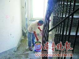 6月21日上午11点,在长清区大学路附近的乐天小区六号楼一单元,居民老陈提着拖把、水桶,和几个邻居一起忙着冲刷楼道的血迹。
