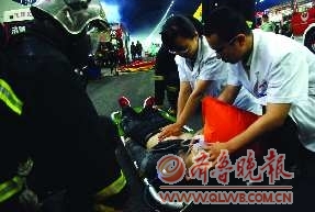 21日,在胶州湾隧道青岛端,消防特勤队员正在“事故现场”紧急救援。当日,青岛市公安消防局组织了一次火灾扑救综合演练,以此来提高消防部队应对隧道内各类突发事故的救援能力。