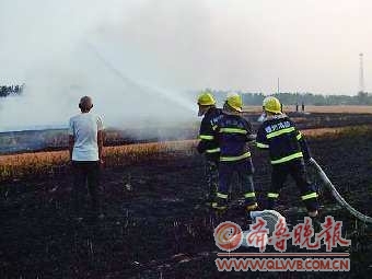 本报6月21日讯(记者 曹宏源 通讯员 尹岩 孙建勇) 一老汉干活累了在地头抽了根烟,不小心点着麦茬地,幸亏消防及时将大火扑灭,才没烧了麦田。