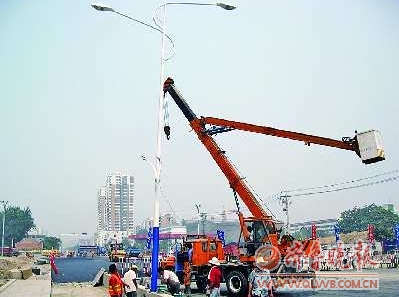 记者在太白楼路最东段看到,大桥的两个塔柱和斜拉索均已建设完毕,远远望去,两个塔柱高耸云端,已成为城市东部的新地标。大桥桥面上的沥青铺设基本完工,在桥面两侧,工人用吊车将已安装完毕的整体路灯吊到基座处,然后上紧螺丝,桥面南侧的路灯已基本安装完毕。太白楼东路与大桥连接处的近百米路段,自去年道路竣工通车后该段未铺设沥青,也导致了桥面与路面没有实现连接。21日,市政部门工作人员开始铺设该段沥青,“估计需铺设1500吨沥青,两天内可以完工。”负责该段施工的项目经理刘超告诉记者。