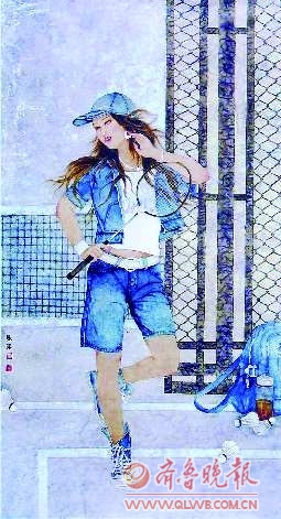 苏丽萍告诉记者,她将传统技法与现代手法相结合,画面展示了新时代都市丽人的休闲时尚生活,同时也从侧面体现出咱老百姓在共产党带领下的那种幸福。