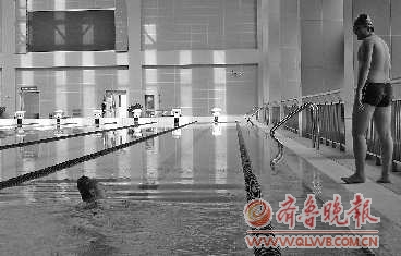 21日下午,在日照游泳中心训练池,5名市民在宽大的泳池内畅游。市民梁岩来自岚山区,他平时非常喜欢游泳,今天是专程从岚山赶到游泳馆来体验游泳的。“游泳池非常漂亮,在这里面游泳感觉很棒,这可是国内一流的游泳馆。”