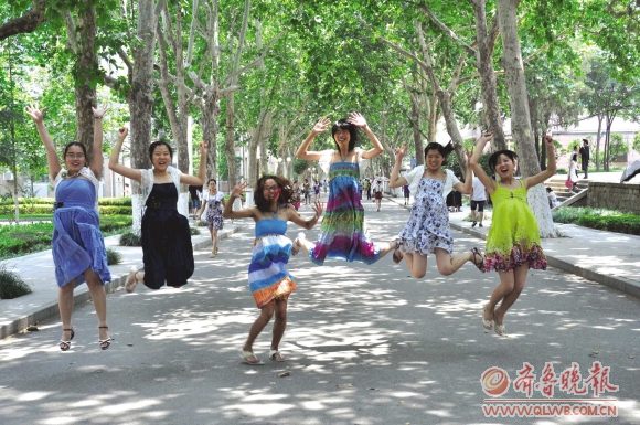 考研录取结果公布后,山东农业大学校本部9号公寓的114宿舍一下子变成了考研“明星宿舍”。宿舍内的六名女生全部考上了全国重点大学的研究生。图为六名女生尽情地享受考研成功后的喜悦。