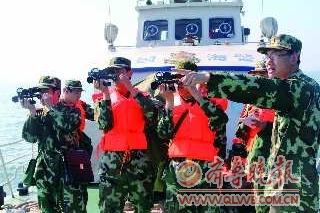 近日,山东边防总队威海海警训练基地组织新战士登舰出海,进行实地培训,检验新兵技能。图为新战士在教官的指导下使用航海器械。