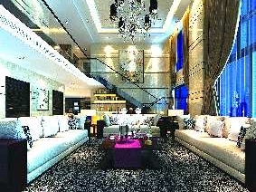 此案例为高档小区的四层别墅,客厅中空层高为6米。全屋清式古典家私、描金屏风搭配古典的国画壁画体现了古典中式的奢华。拱形隔断、织帐竹帘增强了空间的层次感与虚实的变化。全屋用字画、卷轴、古玩、金石、山水盆景等加以点缀,渲染出满室书香,一